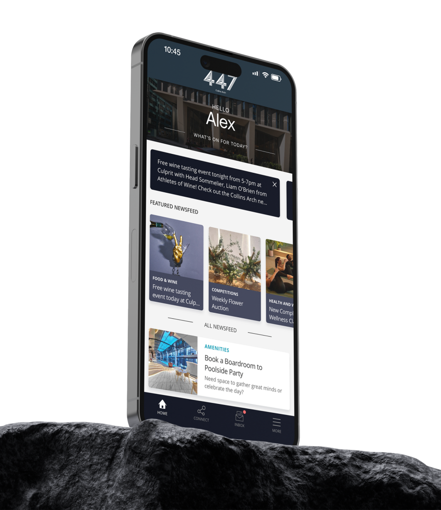 The Collins Arch App is a gateway to unlocking elevated convenience and access to all facilities, retail tenancies and community activations.